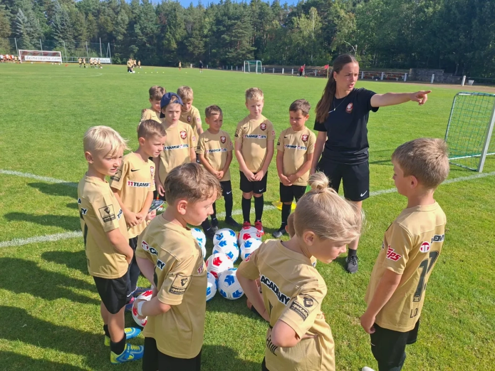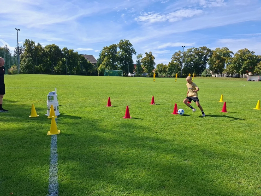 Der Donnerstag, der letzte Tag des Camps, begann am Vormittag etwas lockerer. An verschiedenen Stationen konnten die Kinder ihre Fähigkeiten und ihr Wissen zeigen: Beim Mega-Dribbler waren Ballkontrolle und Technik gefragt, beim Fußballgolf Zielgenauigkeit und Kreativität. Zudem wartete ein spannendes Fußballquiz, bei dem die Kids ihr Fußballkenntnisse unter Beweis stellen konnten. Auch die Passübungen sowie das freie Spiel in der sogenannten tschechischen Rolle sorgten für Abwechslung und viel Spaß.