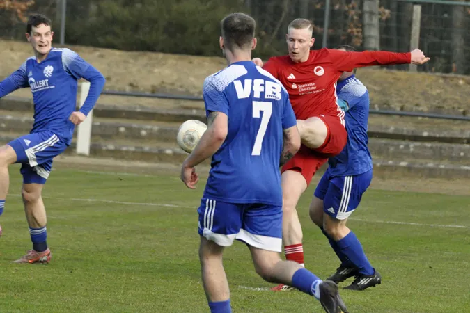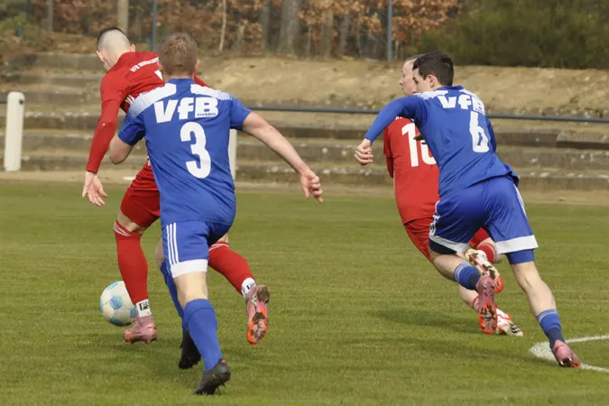 Ohne Sieger endete das VfB-Duell auf dem Hohenleipischer Sportgelände, wobei die Platzherren mit ihrem ersten Saison-Remis natürlich unzufriedener waren als die Gäste, die sich als der erwartet unangenehme Gegner präsentierten. Hohenleipisch ließ insgesamt fast nichts zu, versäumte vor allem aber das zweite Tor nachzulegen. Chancen dafür gab es auch noch in der druckvollen Schlussphase, wo den Einheimischen auch das Spielglück etwas fehlte. Gleichwohl die Trebbiner kaum noch etwas zuzusetzen hatten, war meist ein Gäste-Kicker in der Flugbahn der Hohenleipischer Torschüsse, oder diese waren zu ungenau.