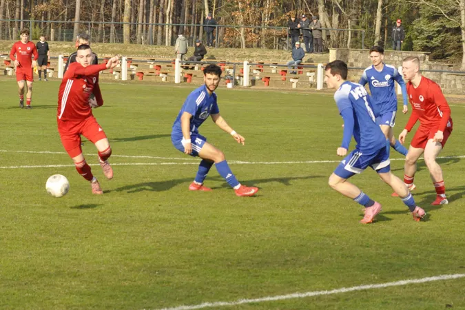 Es brauchte etwas, bis sich die Anfangsnervosität auf beiden Seiten gelegt hatte. Nach der ersten Hohenleipischer Möglichkeit durch Felix Kniesche (13.) brachten die Einheimischen Mitte des ersten Durchgangs etwas Struktur in ihr Spiel, im letzten Abschnitt fehlte aber noch die Präzision. Bestes Beispiel dafür war der Pass auf den gestarteten Florian Vogt, dem der Keeper im Herauslaufen an der Strafraumkante den Ball noch wegfischte (23.) Die Gäste störten den Heim-Spielfluss immer wieder erfolgreich, blieben vor dem Tor mit lediglich einem Torschuss bis zum Pausenpfiff ungefährlich und zeigten in der Defensive die eine oder andere Lücke. Die Platzherren konnten daraus aber lange kein Kapital schlagen und auch ein zentraler Abschluss aus zehn Metern war nicht scharf genug (33.). Ende des ersten Abschnitts gelang der Platz-Elf die Führung, nachdem Felix Kniesche aus zwölf Metern eingesetzt hatte (42.) und beinahe hätte der Ball ein zweites Mal im Trebbiner Netz gezappelt. In der Nachspielzeit vergraben die Platzherren jedoch eine Riesenchance und der Ball ging am leeren Tor knapp vorbei.